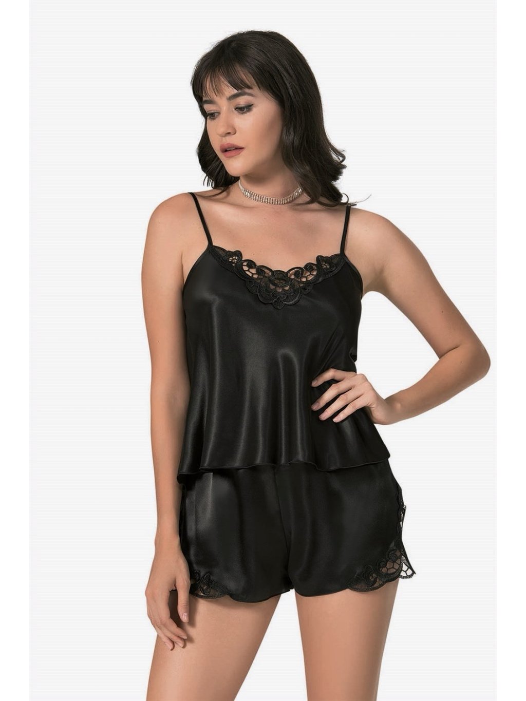 - Pyžamo je vyrobené z príjemne splývavého saténu