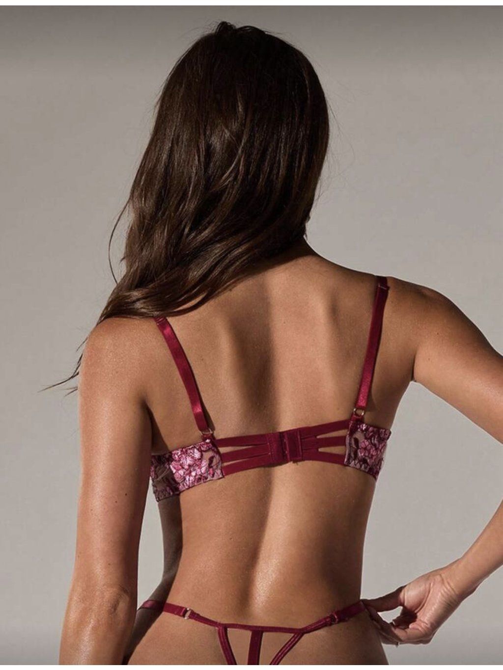 Nežný, zvodný a dokonale ženský. Tento čipkovaný set v púdrovo-ružovom odtieni s výraznou bordovou výšivkou je stelesnením romantiky a sebavedomia.